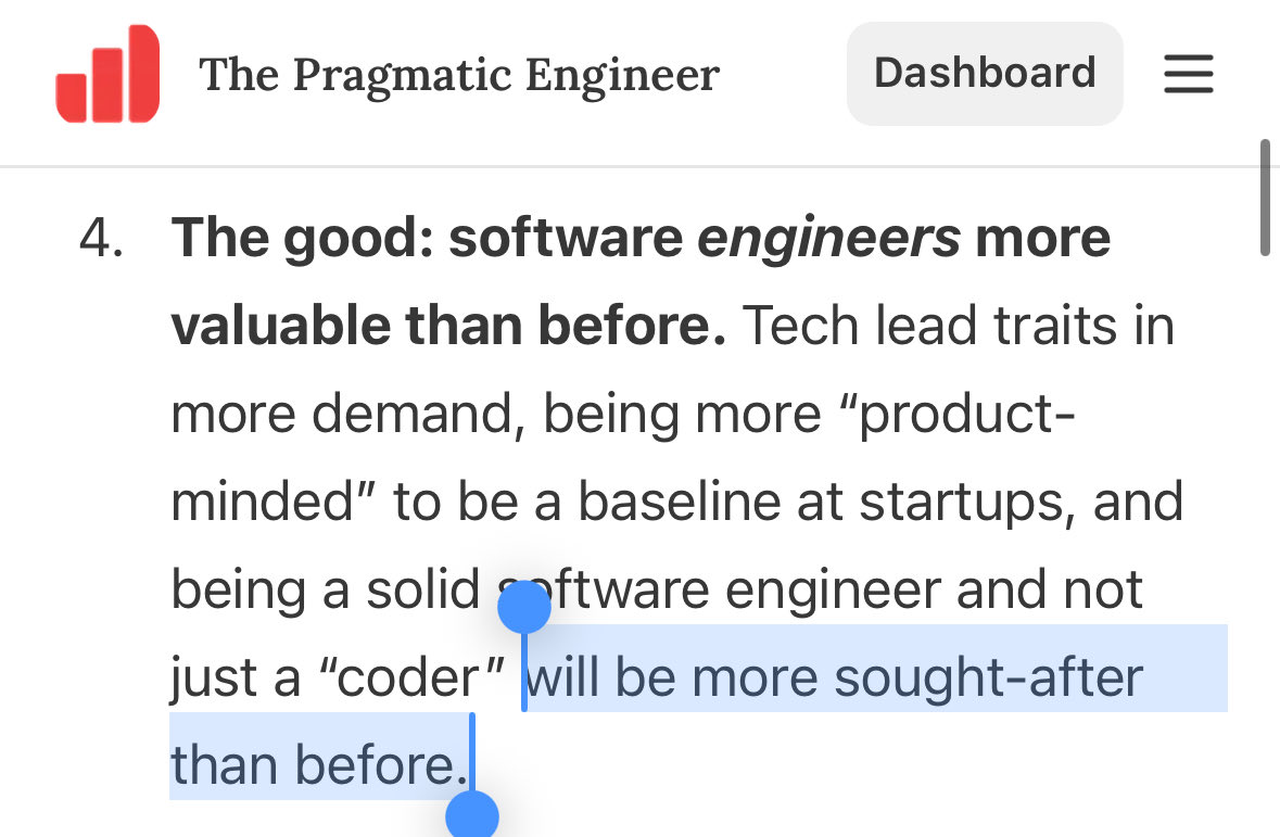 This has been said a thousand times before, but allow me to add my own voice: the era of humans writing code is over. Disturbing for those of us who identify as SWEs, but no less true. That's not to say SWEs don't have work to do, but writing syntax directly is not it.
