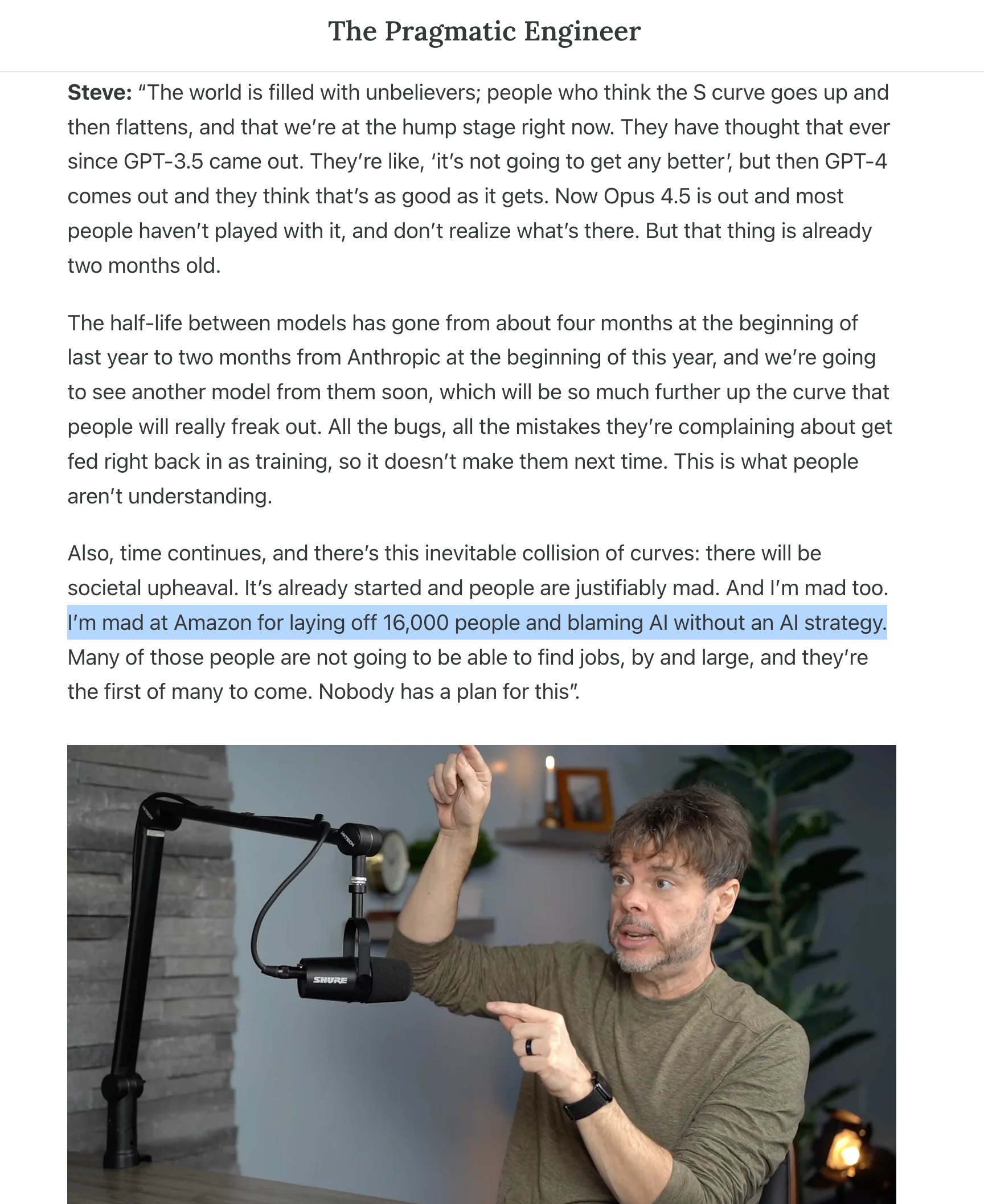 @atelicinvest offered the more nuanced take that performance differentials between organizations will widen massively, with the top 10% achieving "unbelievably better" product velocity and quality versus the bottom 25%, leading to market share shifts "probably in a bigger way than we imagine." @aakashgupta noted that AI-first companies now want PMs who can write evals, prototype with code, and ship directly, warning that PMs who can't do the technical work "will get replaced by an agent with a Jira login."