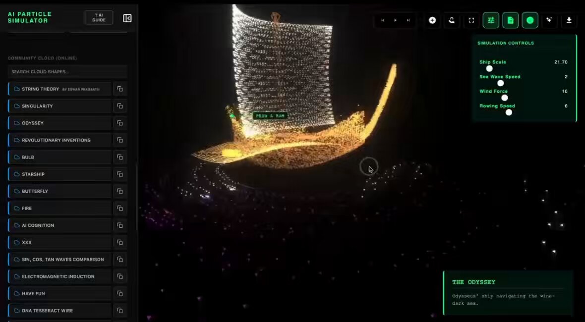 - @KYGAMER93171158 shared an AI particle simulator that converts prompts into complex visual systems and exports to HTML, React, or Three.js.