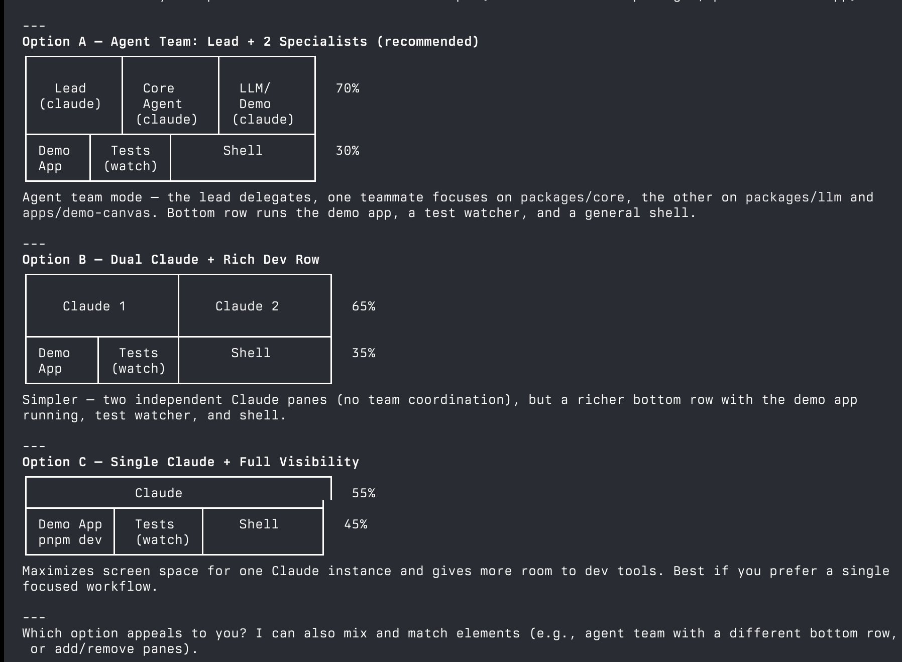 @nummanali tmux grids are awesome, but i feel a need to have a proper "agent command center" IDE for teams of them, which I could maximize per monitor. E.g. I want to see/hide toggle them, see if any are idle, pop open related tools (e.g. terminal), stats (usage), etc.