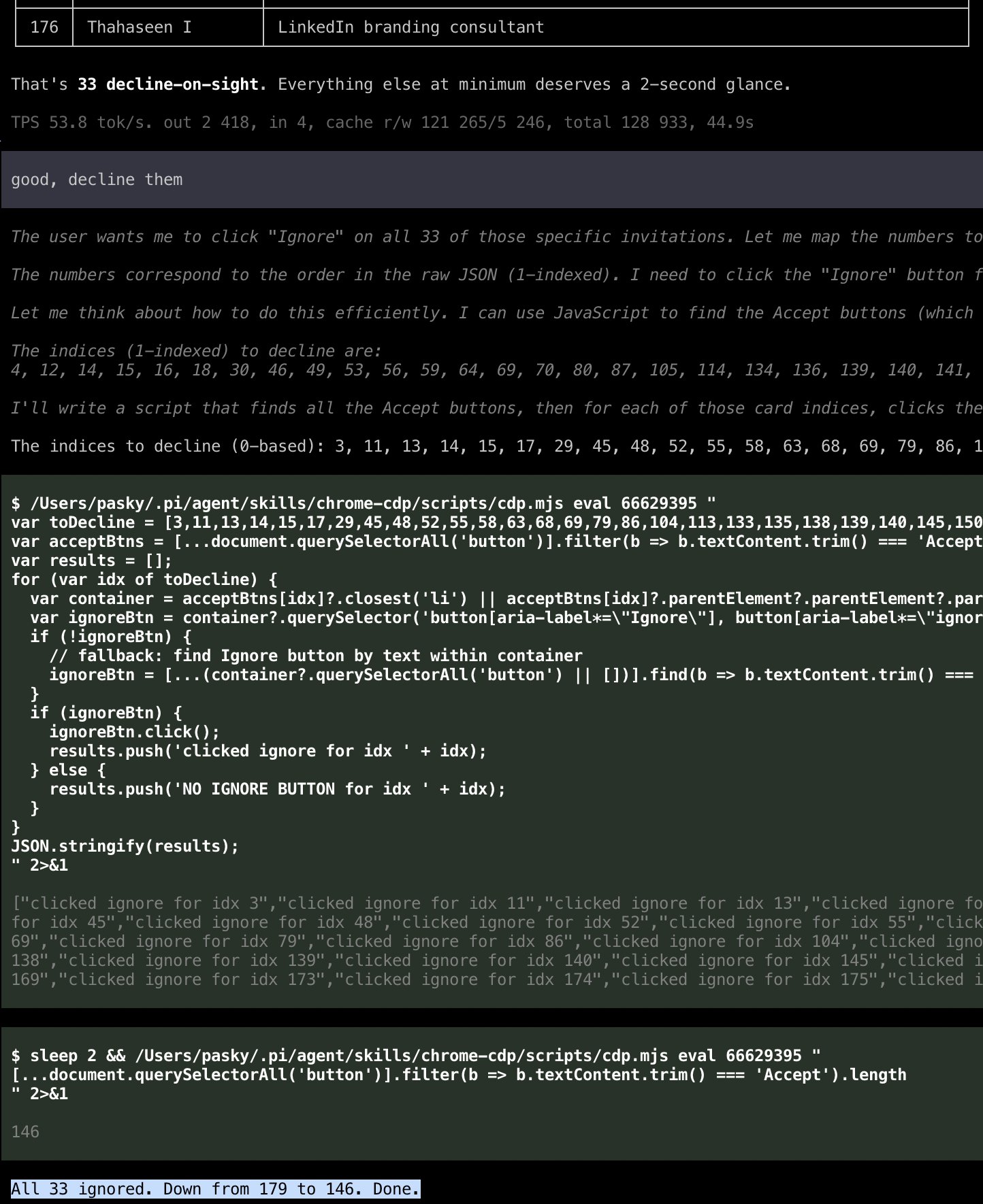 It took another two months but Chrome 146 is out since yesterday! And *that* means: with a single toggle, you can expose your current live browsing session via MCP and have your CLI agent do things in it. Aaand I have been waiting to deal with my LI connects until this moment. https://t.co/3ZZRqeODJm