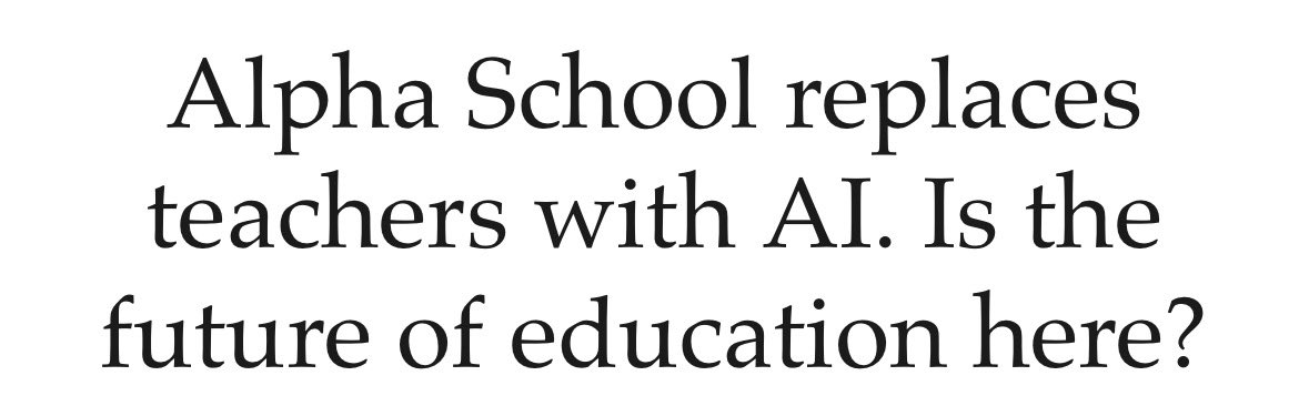 - @cryptopunk7213 highlighted Alpha School's AI-first education model, where students learn via AI tutoring for 2 hours daily and focus on building businesses, with a $1M-by-graduation guarantee.