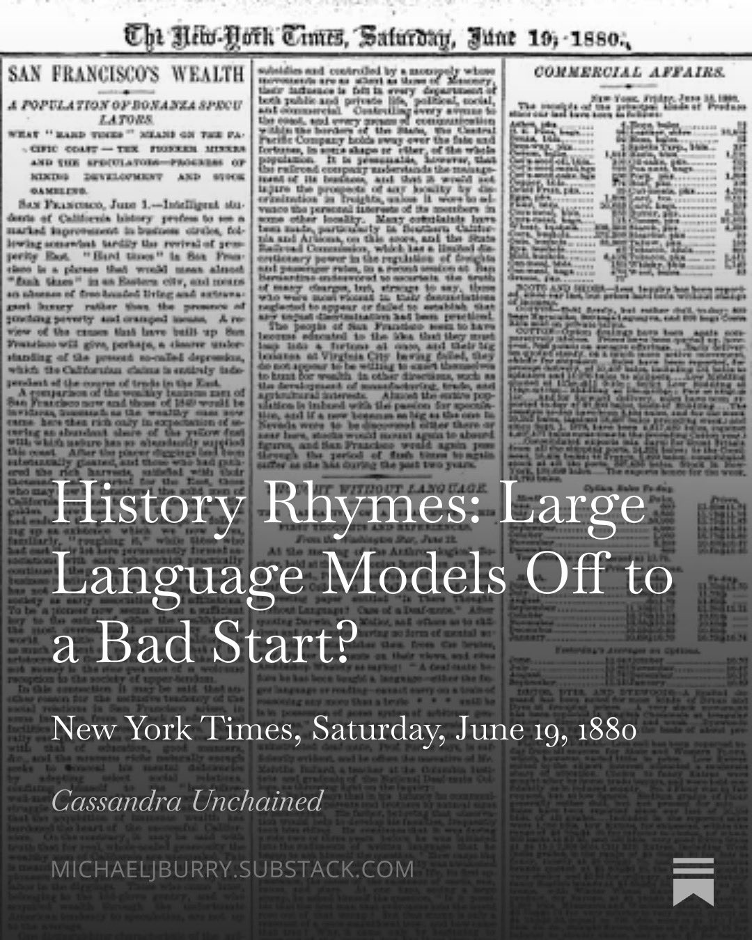 - @michaeljburry recommended an 1880 Smithsonian presentation as relevant to today's AI scaling debate, drawing parallels between historical technological optimism and current LLM hype. Weekend reading for the skeptically inclined.
