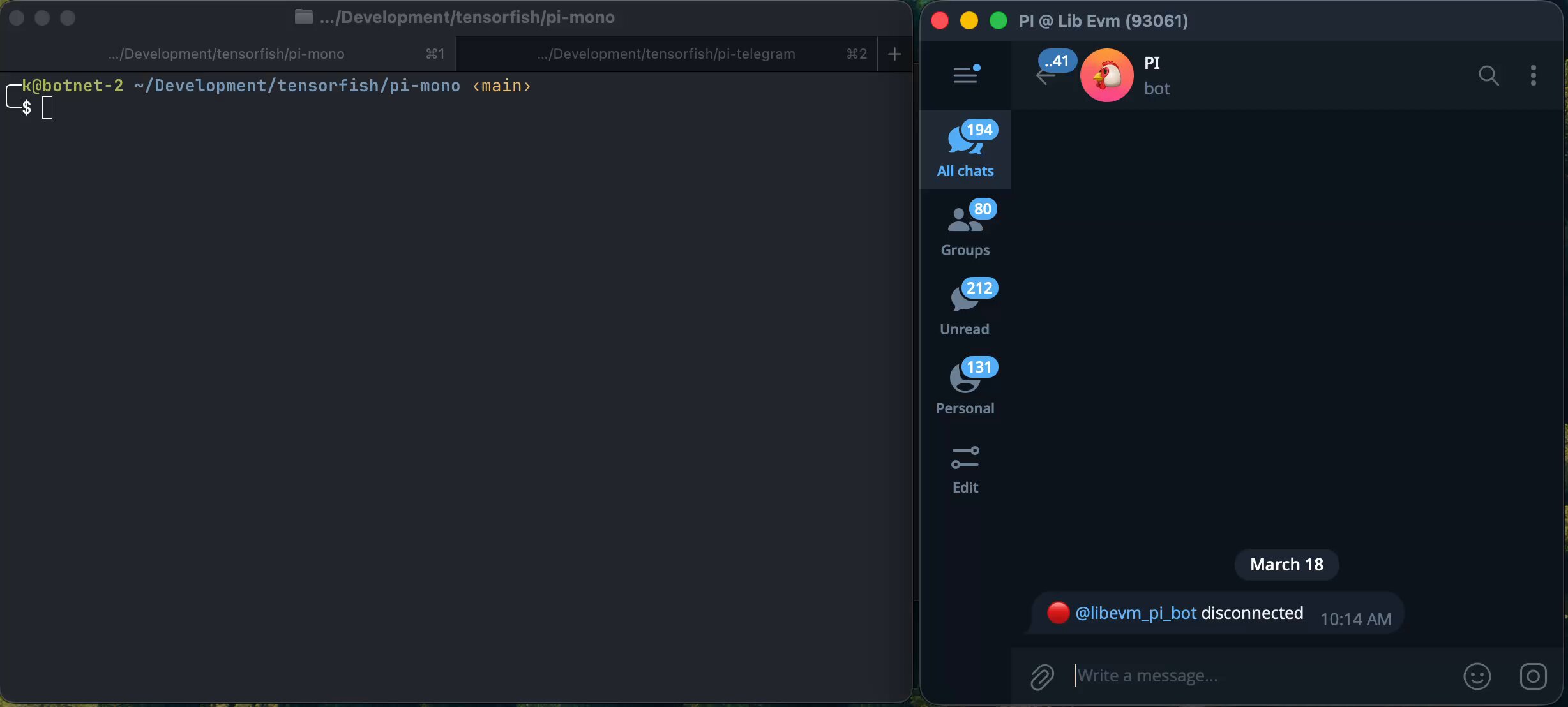 - @badlogicgames retweeted a community-built Telegram extension for the pi agent framework.