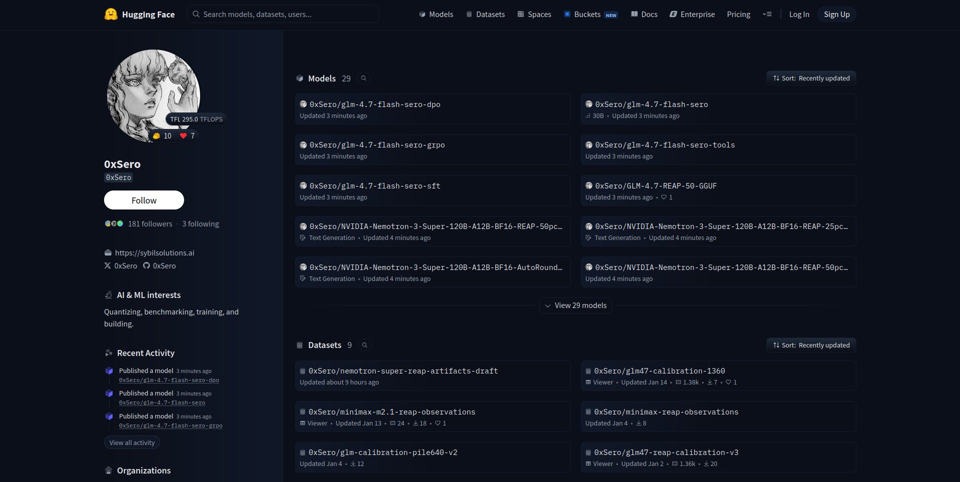 @sudoingX highlighted @0xSero, an independent developer with 29 models on HuggingFace's page 2 rankings, no lab backing, and $2,000 of personal GPU spend. He compressed GLM-4.7 to run on a MacBook and quantized Nemotron Super the week it dropped, all public and free.