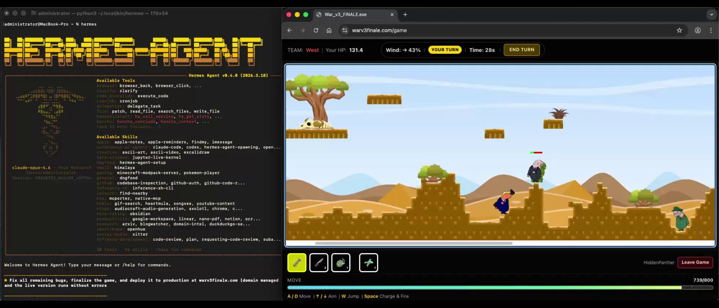@javierblez broke down how the Hermes agent by Nous Research built a fully playable Worms clone in 2.5 hours: "Hermes used 'Persistent Shell' mode, which ensured it didn't forget its current folder or active tools. To optimize the workflow, the agent moved beyond linear execution and parallelized the workload." The agent spawned isolated subagents, used filesystem checkpoints for rollback, and even attached to a live Chrome instance via CDP to fix rendering bugs in real-time. By the end, it had autonomously converted the physics logic into a reusable plugin.
