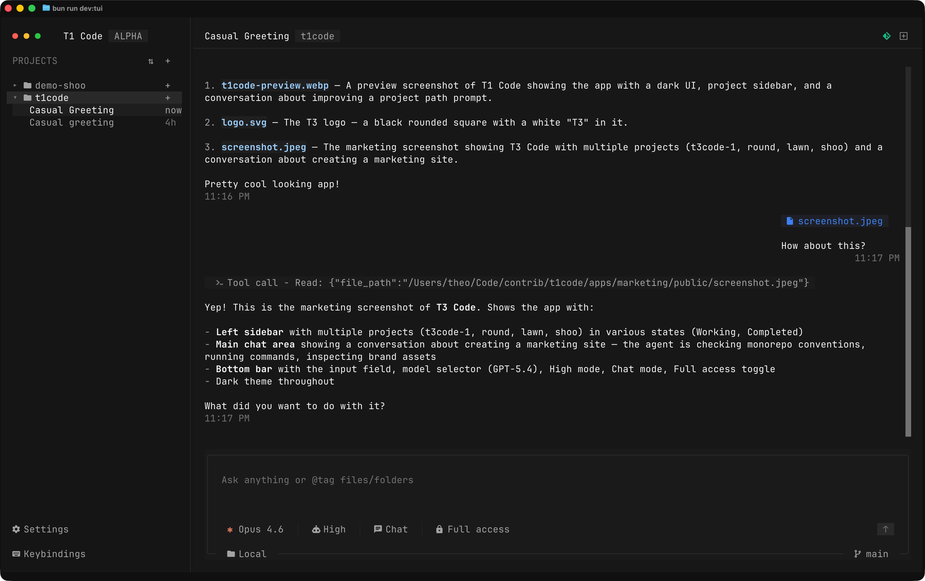 Theo, after experiencing the superiority the TUI provided, was blown away. The fact that it worked flawlessly the first try, with speed and in perfect fashion, left him astonished, with no words. He took months to recover from this excellent experience, like he had just woken up from a bad dream, a dream where GUIs were superior to the terminal, but now that he was awakened, he saw the light. Right after, Theo became a core contributor of T1Code™, leaving the old and deprecated project T3Code™ behind. He figured that now everyone had seen the light on the better, more reliable, and quick experience TUIs offered, that no one will ever submit themselves to an inferior experience such as the GUI... and the world was never the same.