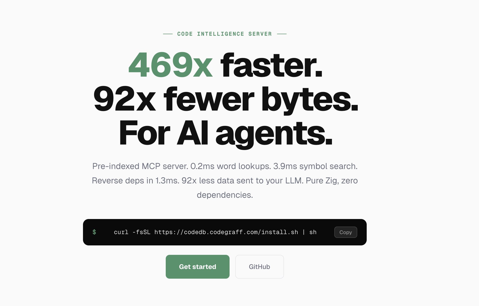 On the code intelligence side, @rachpradhan announced a server built in Zig that gives AI agents up to 469x faster queries than grep/find while using 92x fewer tokens. The approach indexes the codebase once, then serves every query from memory: "0.2ms lookups. 3.9ms symbol search. No filesystem scans. No raw text dumps. 0 embeddings." This is exactly the kind of infrastructure that makes agent-driven development practical at scale, where every token saved and every millisecond shaved compounds across thousands of operations per session.