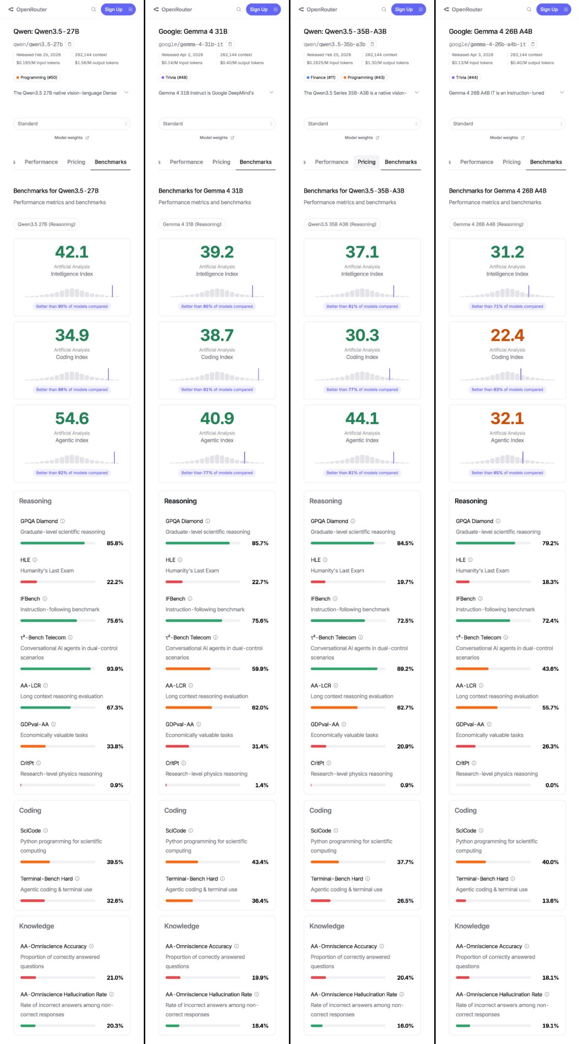 On the quantization front, @whyarethis demonstrated Gemma 4 26B compressed to 13GB and running on an M1 MacBook at 20-40 tokens per second, describing a process involving "dead heads pruned and replaced by SVD rotations" and optimized KV cache. Meanwhile, @lafaiel shared specs on the new generation of mid-size models including Qwen 3.5 27B and Gemma 4 31B alongside their mixture-of-experts variants, giving local inference enthusiasts more options than ever.